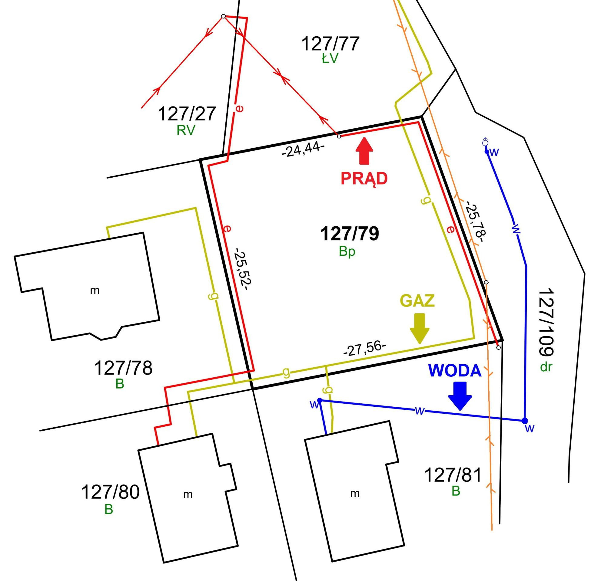 - prąd - w działce,