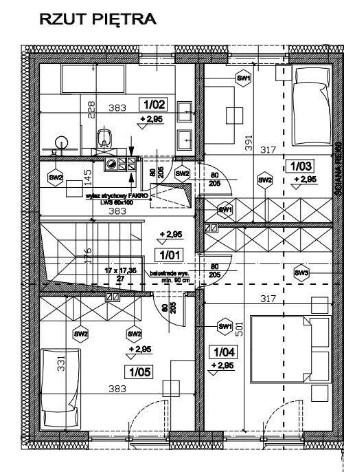 - 3 pokoje (sypialnie- 12,43m2, 15,94m2, 12,75m2), łazienka z WC 8,78m2, komunikacja 11,31m2.