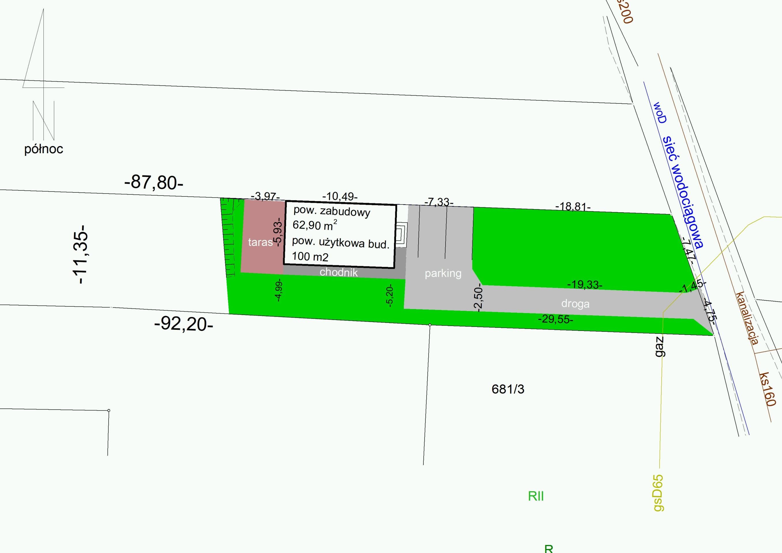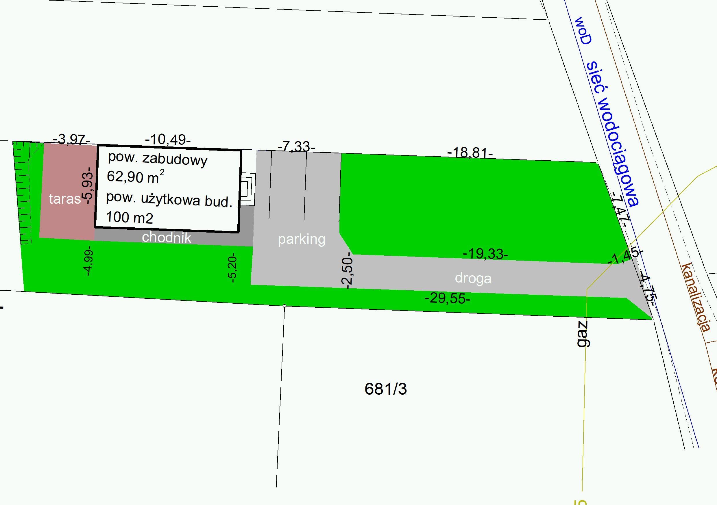 Media: prąd - na działce sąsiedniej, gaz - na działce, woda - w drodze gminnej, kanalizacja - w drodze gminnej,