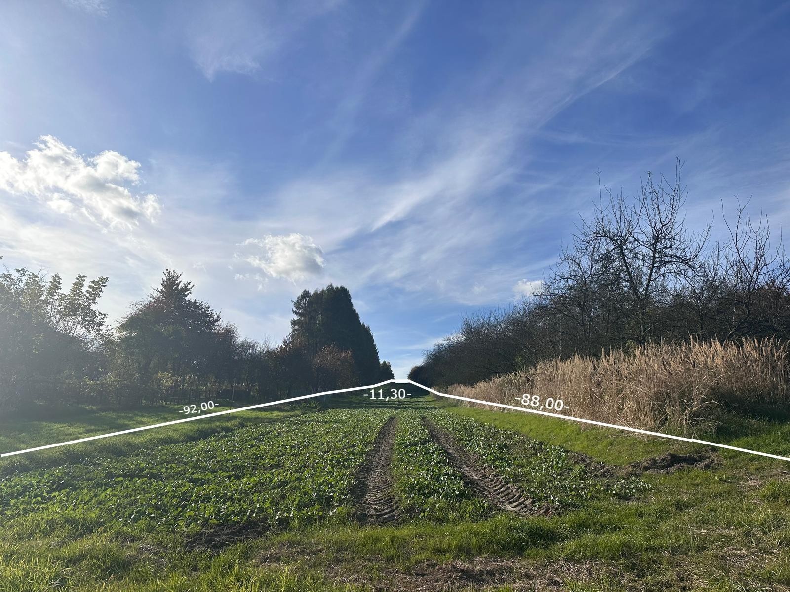Wymiary: działka w kształcie prostokąta - około 11,30m x 438 m,