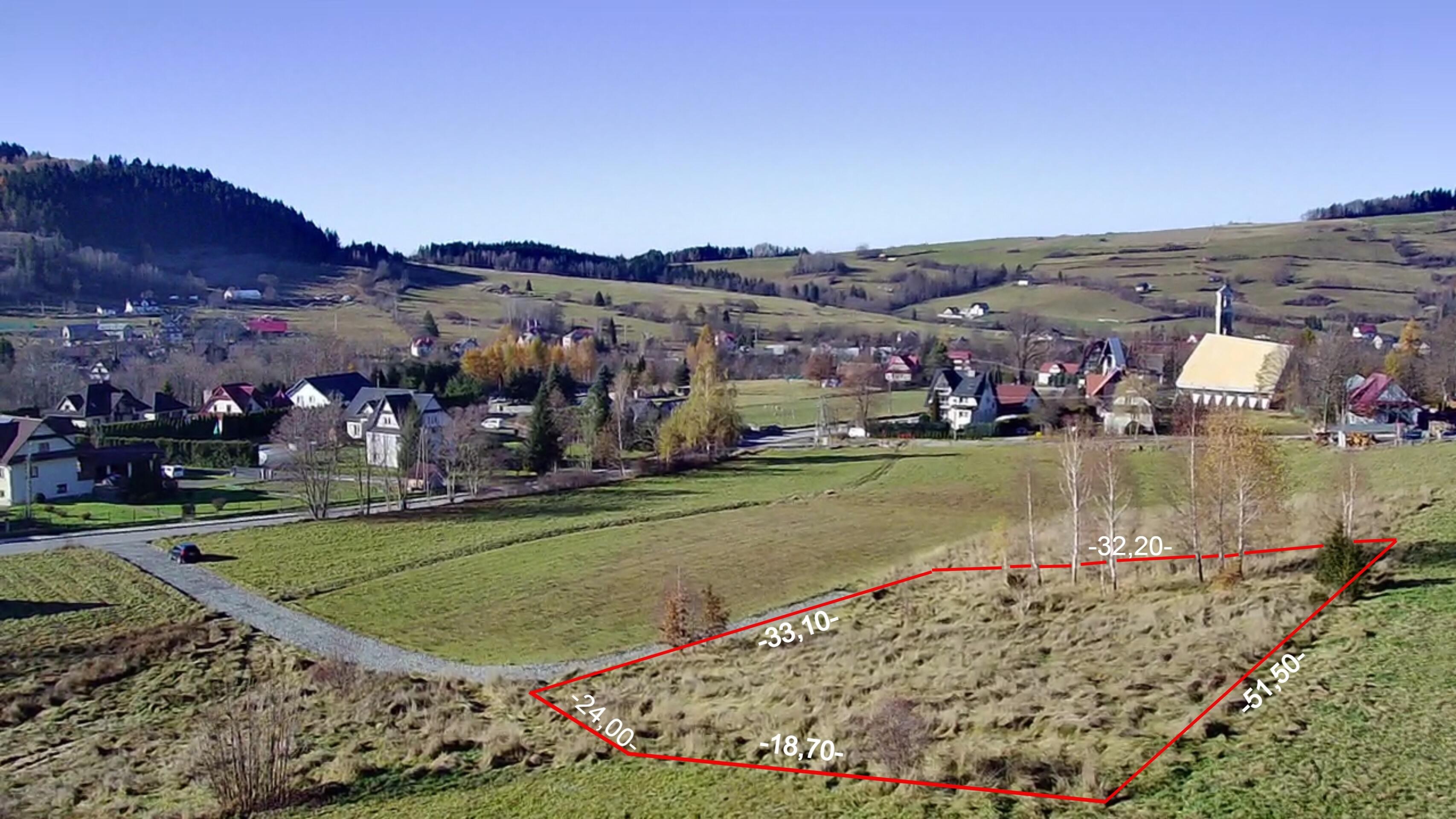 Na sprzedaż działka budowlana z niezagrożonym widokiem na góry o powierzchni 800 m2, położona w miejscowości Poręba Wielka (gmina Niedźwiedź).