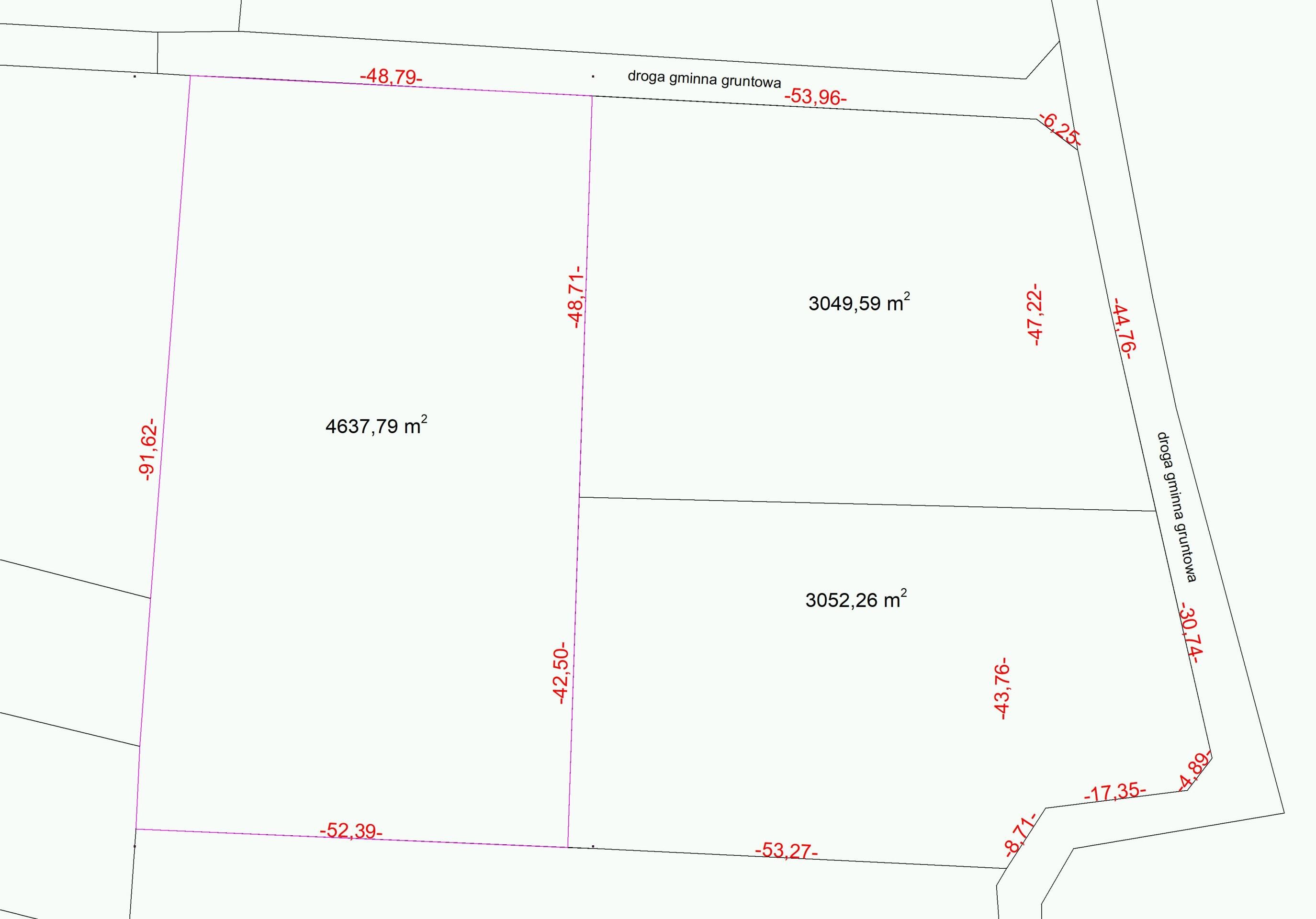Wymiary: działka zbliżona do prostokąta - około 43cm x 60 m. Możliwość dokupienia większej powierzchni o dodatkowe około 7700m2,
